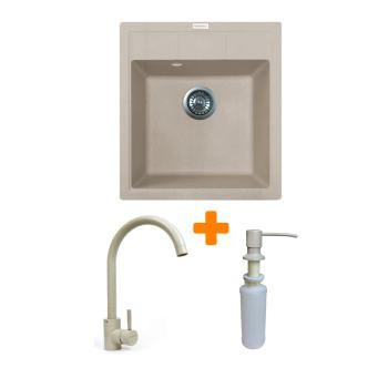 Adamant Набор кухонная Brick, искуственный камень, квадрат, без крыла, 460x515x200мм, чаша - 1, врезная, Avena + смеситель и дозатор
