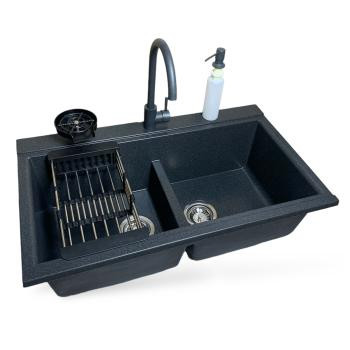 Adamant Набор кухонный Similar, искуственный камень, прямоуг., без крыла, 885x505x230мм, чаша - 2, врезная, графит + смеситель + дозатор + ополаскиватель стаканов + коландер