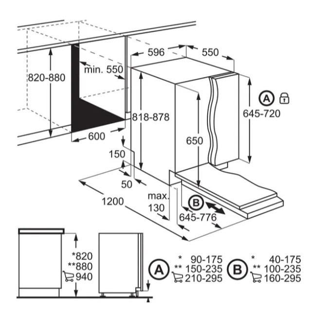 Особливості робочої камери: регульований по висоті кошик для посуду