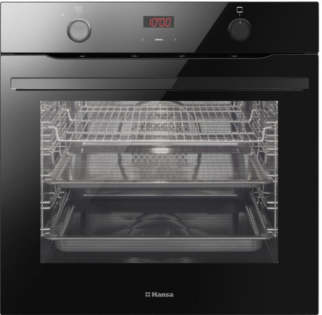 Електрична багатофункціональна духовка, 9 режимів, гриль, конвекція, розморожування, об'єм 77 л, дисплей, таймер, блокування від дітей, втоплені перемикачі, очищення парою, дротяні напрямні, рецепти на дверцятах