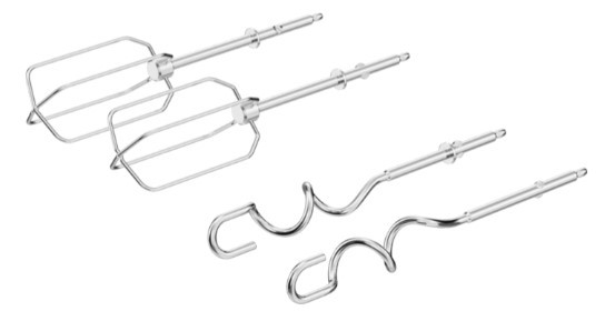 Міксер потужністю 500 Вт, оснащений двома гачками для замішування тіста з нержавіючої сталі, які підходять для всіх типів густих сумішей. Традиційний збивач дозволяє використовувати пристрій для різних рецептів. Прилад має максимальну швидкість на холостому ходу 1280 об/хв і мінімальну — 800 об/хв. Леза виготовлені з нержавіючої сталі.