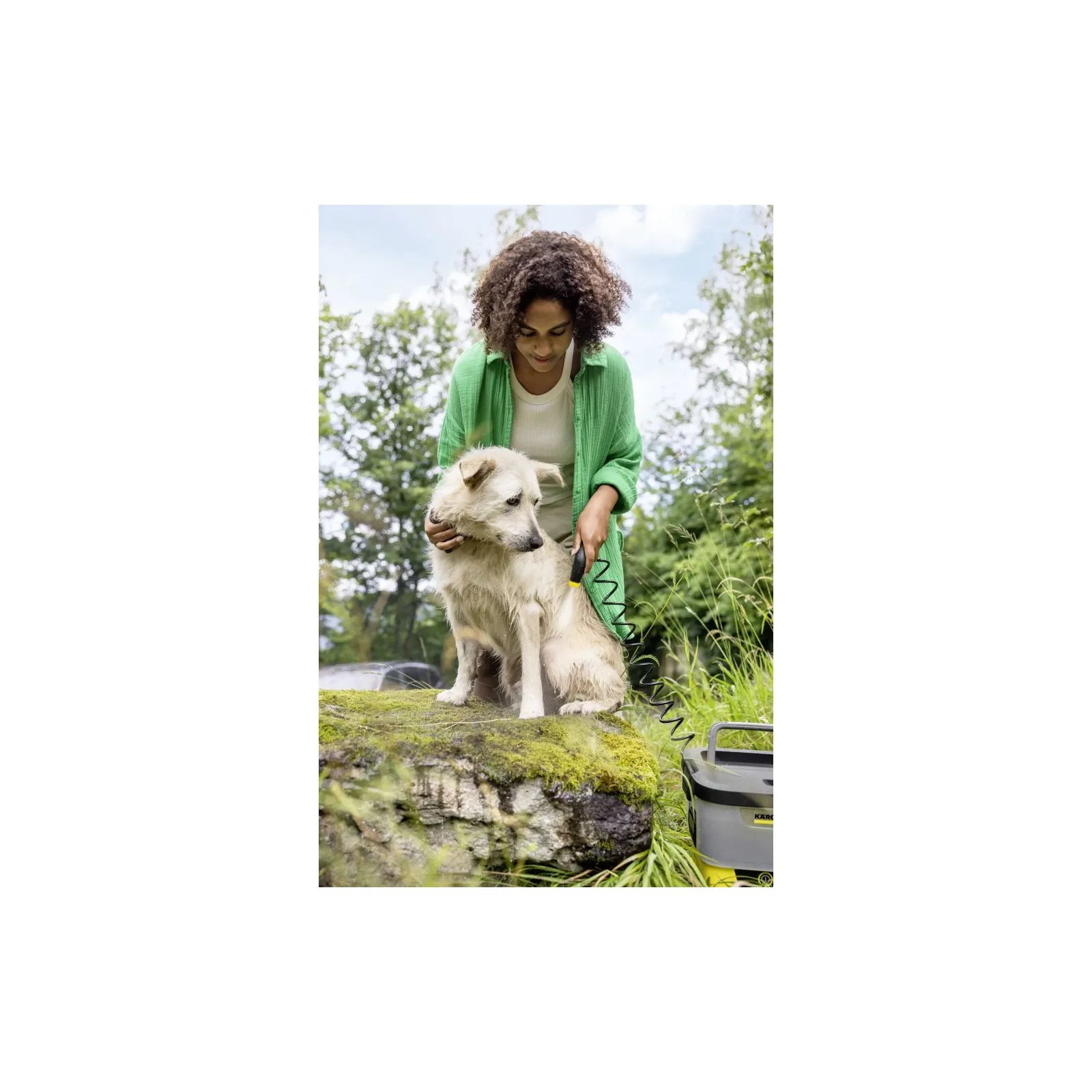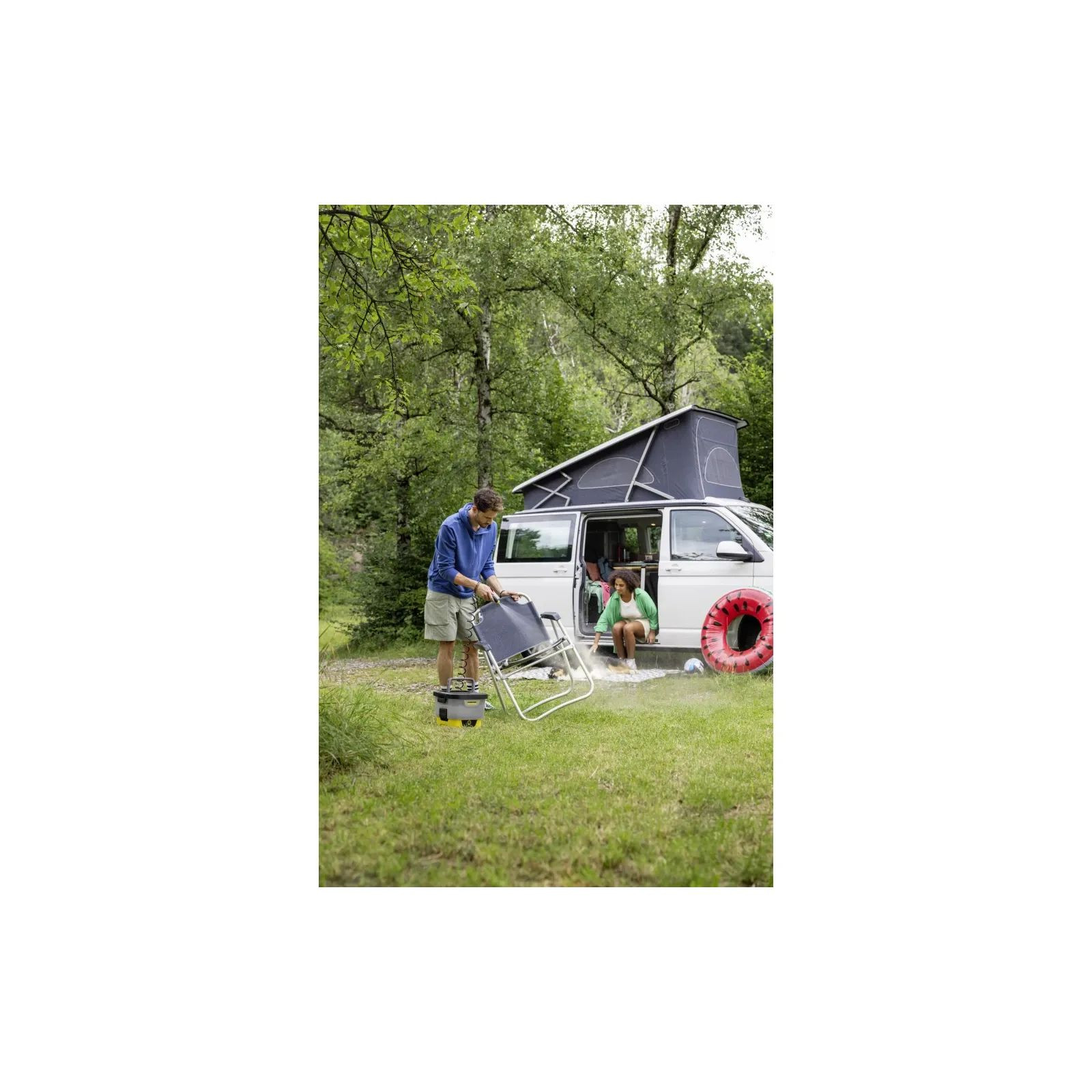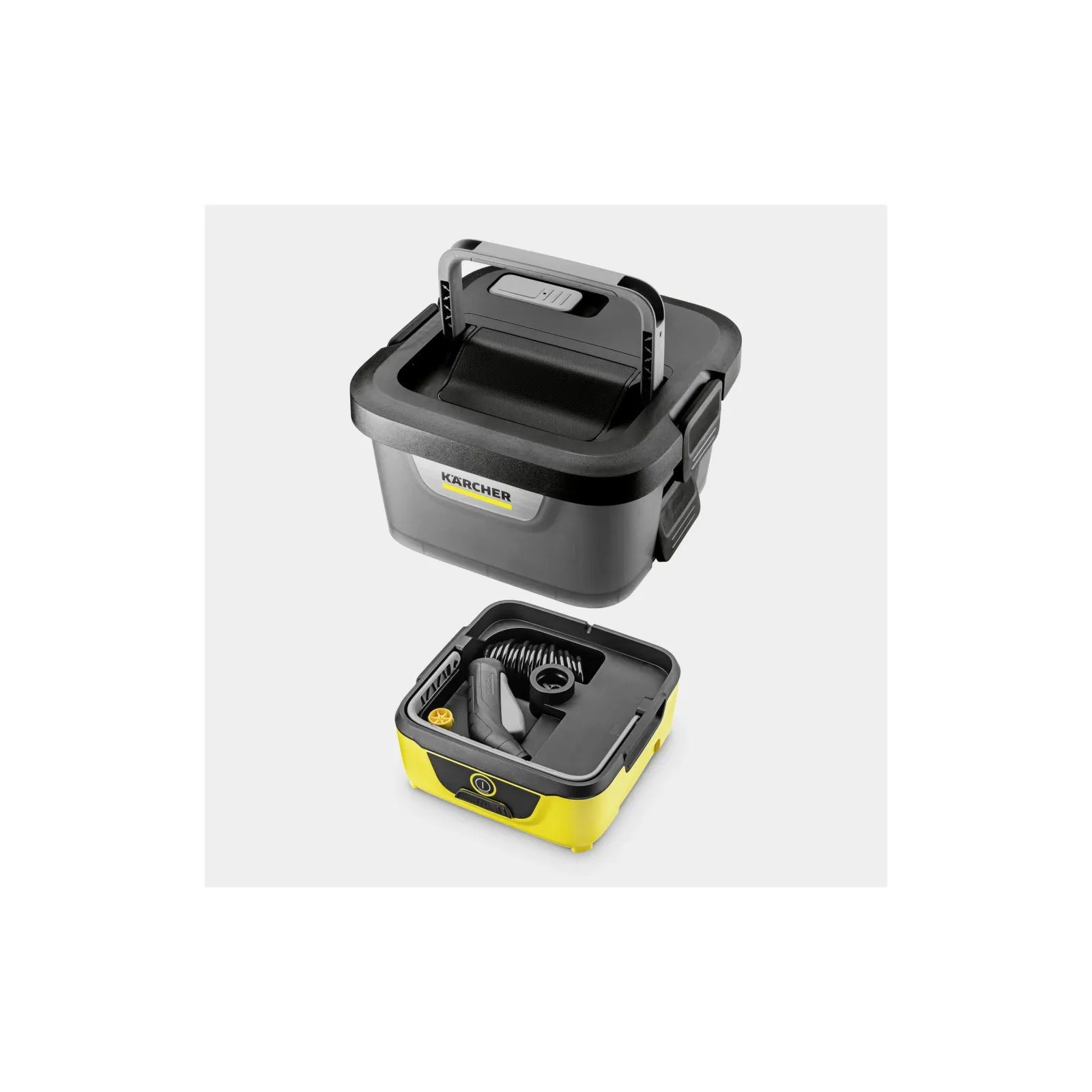 Компактна портативна мінімийка Kärcher OC 4 із літій-іонним акумулятором та вбудованим 8-літровим баком ідеально підходить для тих, хто шукає мобільний пристрій для очищення під час подорожей, кемпінгу, після велосипедних прогулянок або роботи в саду. Цей акумуляторний апарат низького тиску забезпечує автономну роботу без підключення до електромережі чи водопроводу: достатньо наповнити бак водою, щоб розпочати прибирання. Завдяки технології сопел Kärcher забезпечується дбайливе, але водночас ефективне очищення. Для зручності апарат оснащений світлодіодним індикатором заряду акумулятора та компактною конструкцією, що дозволяє зберігати аксесуари у порожньому баку, заощаджуючи місце. Спіральний шланг 2,8 м гарантує свободу рухів, а пістолет із фіксатором важеля забезпечує комфортну роботу без зайвих зусиль. Широкий вибір додаткових аксесуарів дозволяє розширити функціонал пристрою для вирішення найрізноманітніших завдань очищення, що робить OC 4 ідеальним вибором для дому, дачі або автомобіля.
