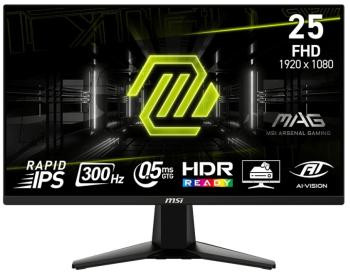MSI MAG 255XF — 24,5-дюймовый игровой монитор с разрешением Full HD и IPS-матрицей. Частота обновления 300 Гц вместе со временем отклика 0,5 мс GtG формирует чёткое отображение динамичных сцен. Антибликовая поверхность сохраняет комфорт при длительном использовании. Цветовой охват sRGB 120% усиливает насыщенность изображения. Поддержка VESA упрощает размещение монитора в игровом пространстве.