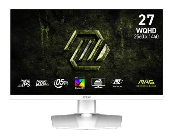 MSI MAG 274QRFW E20 — 27-дюймовый игровой монитор с Rapid IPS-панелью, разрешением WQHD (2560×1440), частотой обновления 200 Гц, временем отклика 0.5 мс (мин. GtG) и покрытием sRGB 124 %, DCI-P3 95 %, Adobe RGB 92 %. Технология AI Vision автоматически улучшает детали в тёмных участках, повышает яркость и насыщенность цветов. Поддержка Adaptive-Sync, Less Blue Light, эргономичная подставка с регулировкой высоты (130 мм), наклона (-5°…+20°), поворота (±30°) и Pivot (±90°). Порты: 2×HDMI 2.0b, DisplayPort 1.4a (HBR3), выход на наушники, два динамика 2 Вт. Идеален для быстрых игр (FPS, гонки, шутеры), работы с графикой и длительного использования с высоким комфортом для глаз.