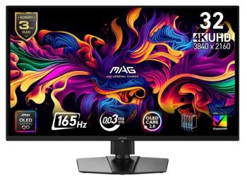 MSI MAG 322UP QD-OLED E16 — 31,5-дюймовый игровой монитор с разрешением 3840×2160 и QD-OLED-панелью третьего поколения. Частота обновления 165 Гц и время отклика 0,03 мс GtG обеспечивают чёткое отображение динамики. Антибликовое покрытие способствует комфортному просмотру при различном освещении. Расширенное цветовое пространство и сертификация DisplayHDR True Black 400 усиливают глубину изображения. Подставка предусматривает гибкую настройку положения экрана.