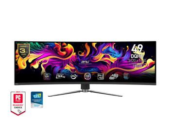 MSI MPG 491CQP QD-OLED — 49-дюймовый игровой монитор с ультрашироким форматом 32:9 и разрешением 5120×1440. QD-OLED-матрица нового поколения обеспечивает высокую контрастность и точную цветопередачу. Частота обновления 144 Гц и время отклика 0,03 мс GtG формируют чёткое отображение динамики. Изогнутый экран с радиусом 1800R усиливает эффект погружения. Антибликовая поверхность сохраняет комфорт при длительных сессиях.