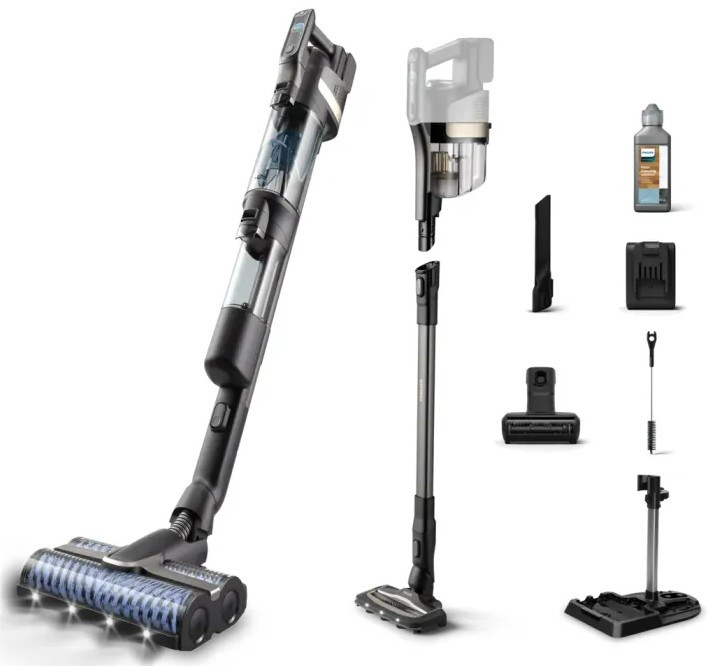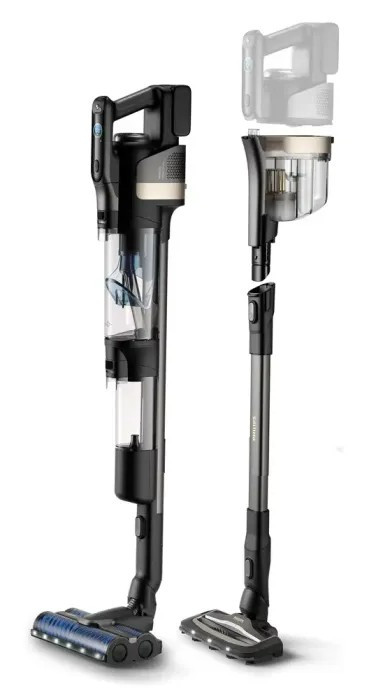 Вертикальний акумуляторний пилосос підходить для сухого та вологого прибирання. Оснащений контейнером для пилу об’ємом 0,45 л і регулятором потужності на ручці. Забезпечує прибирання площі до 285 м², працює до 58 хвилин після повної зарядки, яка триває 240 хвилин.