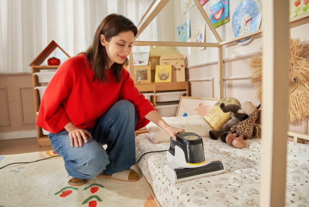 Пилосос із системою сухого прибирання оснащений контейнером для пилу об’ємом 0,4 л, що не потребує мішків. Завдяки триступеневій фільтрації забезпечується ефективне очищення повітря. Потужність всмоктування становить 500 Вт при споживаній потужності 500 Вт. Є електронне регулювання потужності на ручці для зручного налаштування інтенсивності прибирання. Пристрій працює від мережі, рівень шуму становить 80 дБ. У комплекті є основна щітка та насадка для глибокого очищення. Додатковою перевагою є функція УФ-антибактеріальної обробки поверхні, яка допомагає ефективно знищувати бактерії та алергени.