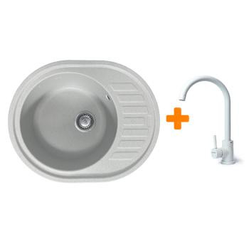 Adamant Мойка кухонная Ovum, искуственный камень, овальная, с крылом, 615х495х200мм, чаша - 1, врезная, Old stone + смеситель