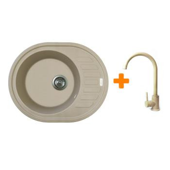 Adamant Мойка кухонная Ovum, искуственный камень, овальная, с крылом, 615х495х200мм, чаша - 1, врезная, Сахара + смеситель