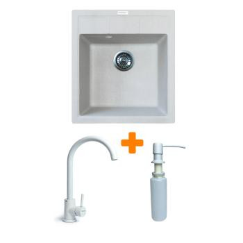 Набор Adamant Brick сочетает мойку из искусственного камня, удобный кухонный смеситель и дозатор. Глубокая квадратная чаша обеспечивает комфорт в работе и легко очищается благодаря непористой структуре. Смеситель из пищевой нержавеющей стали имеет плавный ход и возможность поворота излива. Дозатор устанавливается в мойку или столешницу и заправляется сверху. Комплект помогает создать организованное и гармоничное кухонное пространство.