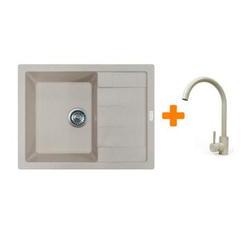 Adamant Набор кухонный Anila, искуственный камень, прямоуг., с крылом, 645х495х200мм, чаша - 1, врезная, Avena + смеситель