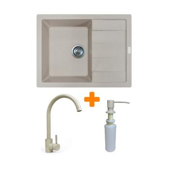 Adamant Набор кухонный Anila, искуственный камень, прямоуг., с крылом, 645х495х200мм, чаша - 1, врезная, Avena + смеситель и дозатор