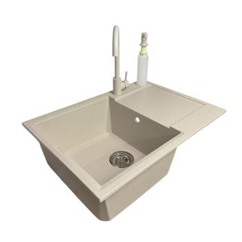 Adamant Набор кухонный Horizon Medium, искуственный камень, прямоуг., с крылом, 700х500х230мм, чаша - 1, врезная, Avena + смеситель и дозатор
