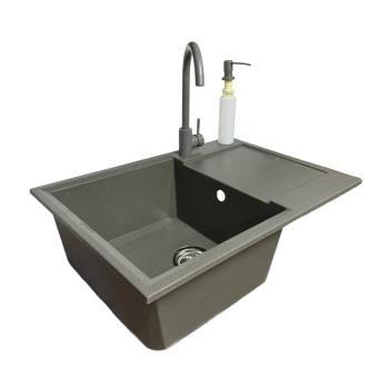 Adamant Набор кухонный Horizon Medium, искуственный камень, прямоуг., с крылом, 700х500х230мм, чаша - 1, врезная, серый + смеситель и дозатор