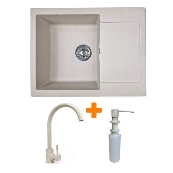Adamant Набор кухонный Minimal, искуственный камень, прямоуг., с крылом, 615х495х200мм, чаша - 1, врезная, Avena + смеситель и дозатор