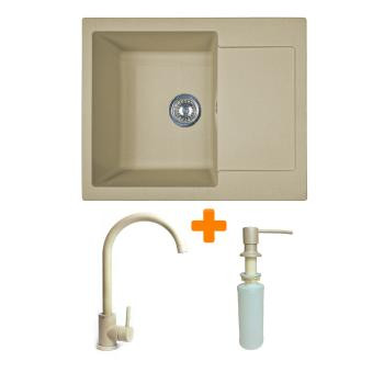 Adamant Набор кухонный Minimal, искуственный камень, прямоуг., с крылом, 615х495х200мм, чаша - 1, врезная, Сахара + смеситель и дозатор