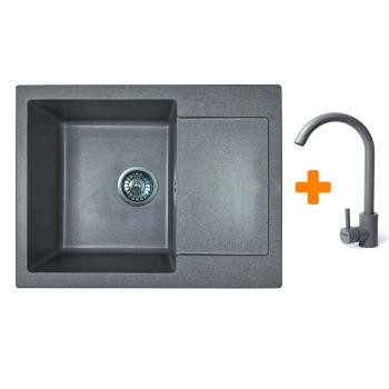 Adamant Набор кухонный Minimal, искуственный камень, прямоуг., с крылом, 615х495х200мм, чаша - 1, врезная, серый + смеситель