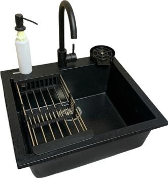 Набор Adamant Univer сочетает мойку из искусственного камня, смеситель, дозатор, ополаскиватель для стаканов и коландер. Квадратная форма и отсутствие крыла помогают эффективно использовать пространство кухни. Технология Solid Surface придает поверхности прочность, устойчивость к повреждениям и простоту в уходе. Наличие дополнительных аксессуаров делает ежедневные задачи удобнее и аккуратнее. Комплект подойдет тем, кто выбирает практичность и современный подход к оснащению кухни.
