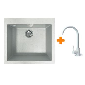 Adamant Набор кухонный Univer, искуственный камень, квадрат, без крыла, 560х500х200мм, чаша - 1, врезная, Old stone + смеситель