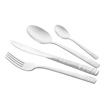 Набор столовых приборов ARDESTO Gemini Loreto изготовлен из нержавеющей стали. В составе – 24 предмета, каждый из которых имеет продуманные пропорции: столовые ножи (6 шт., сталь 13/0, 84 г, 226 мм), вилки (42 г, 2,5 мм, 204 мм), столовые ложки (46 г, 2,5 мм, 203 мм) и чайные ложки (по 6 шт., сталь 18/0, 19 г, 2 мм, 143 мм). Зеркальная полировка придает элегантный блеск сервировке. Возможность мытья в посудомоечной машине обеспечивает удобство ухода.