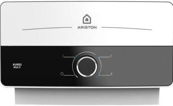 Ariston electric water heater, instantaneous AURES SM 7.7, 4.4 l/min, 7.7 kW, horizontal installation, mechanical control, A, Vietnam, white and black