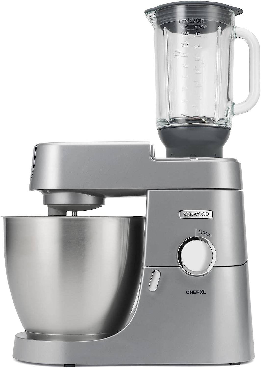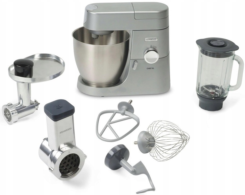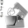 Кухонний комбайн, потужність 1200 Вт, 6 швидкостей, електронне регулювання швидкості, металева чаша - 6.7 л, К-подібна насадка, гак для тіста, віночок для збивання, скляний блендер - 1.6 л, м'ясорубка, диски для фаршу, насадки для терки / шинкування, прогумовані ніжки, знімні частини можна мити в посудомийній машині.