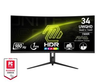 MSI MAG 342CQR-E2 — это 34-дюймовый изогнутый игровой монитор с VA-матрицей, разрешением UWQHD (3440×1440), частотой 180 Гц и временем отклика 1 мс (MPRT). Формат 21:9, высокая контрастность 3000:1 и охват 119% sRGB обеспечивают глубокие цвета, плавность движения и панорамный эффект.