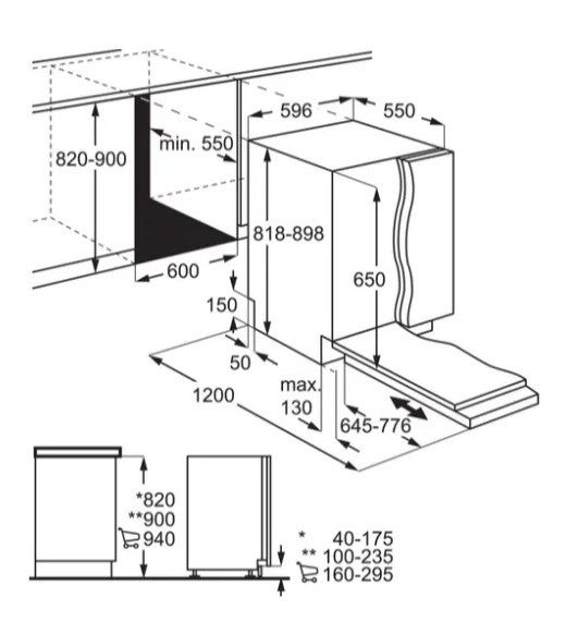 Особливості робочої камери: регульований по висоті кошик для посуду