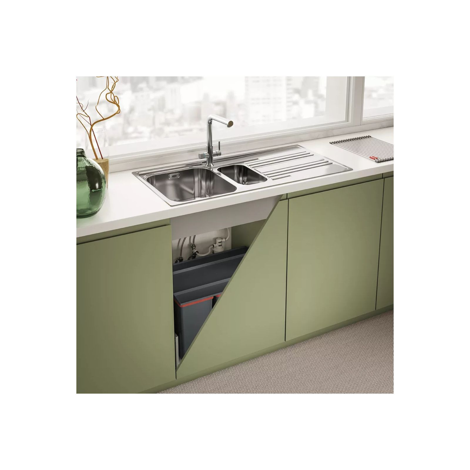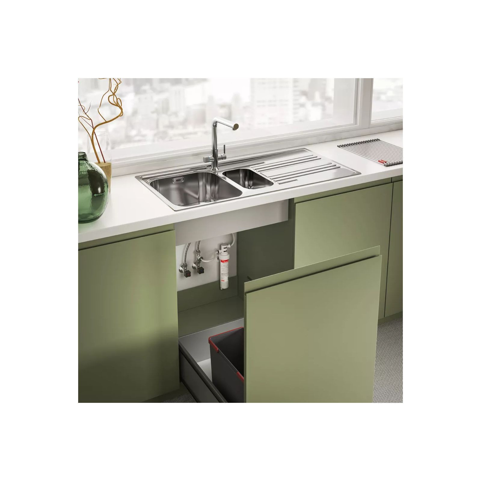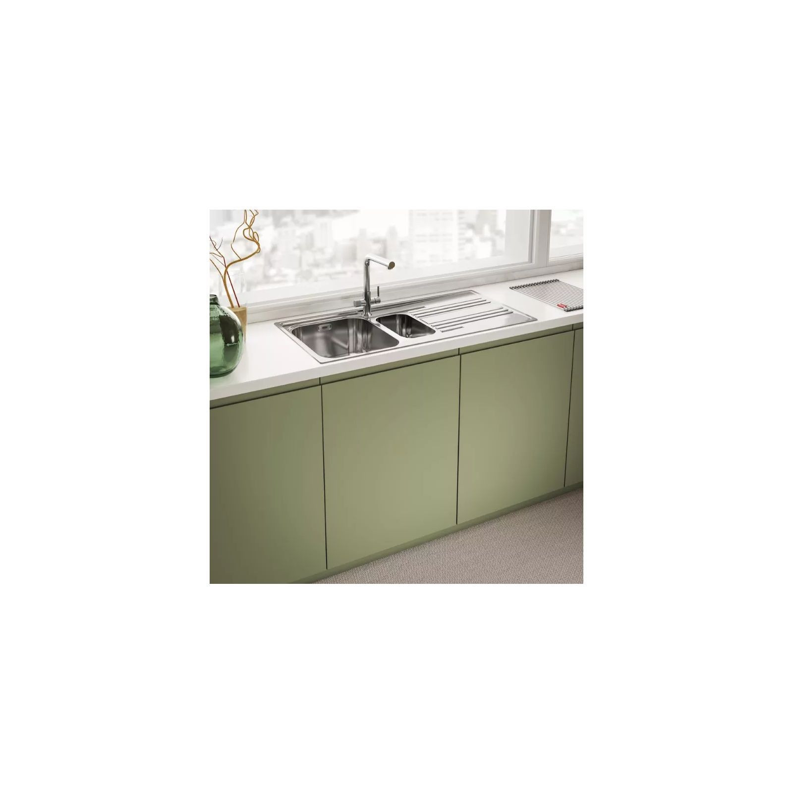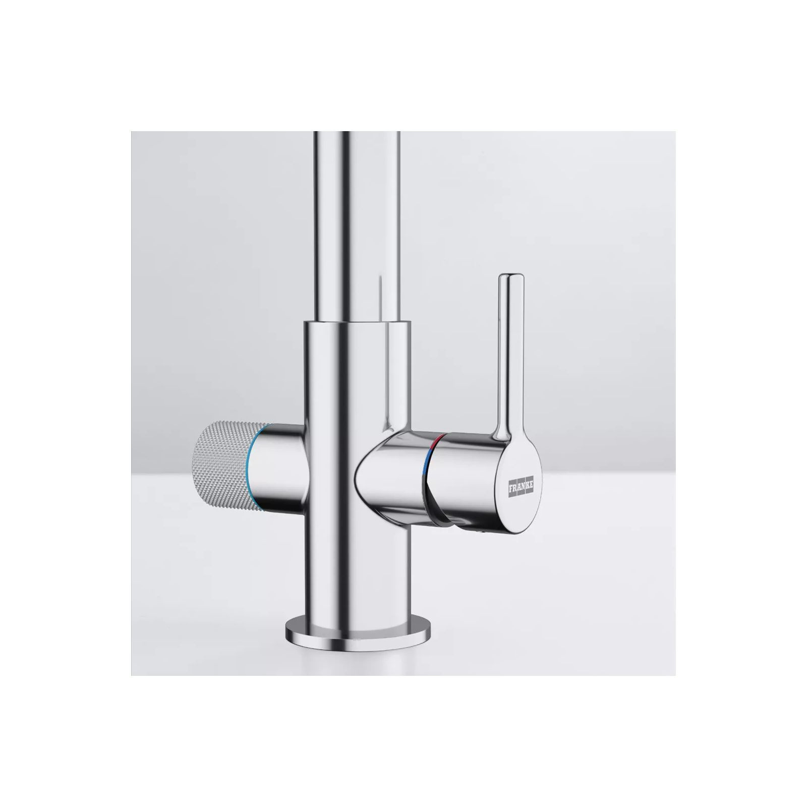 Franke Lina L Clear Water - Змішувач з поворотним невитяжним виливом з під'єднанням до системи фільтрації води, в тому числі зі зворотним осмосом. Важіль відкривається вперед на кут 90°, тому можна здійснювати монтаж впритул до стіни. Кут повороту виливу складає, 360° тому водяний потік досягає більшої площі мийки, а також такий змішувач можна монтувати в острівні кухні. Аератор насичує водяний потік повітрям, завдяки чому краще працюють миючі засоби а також економиться вода.