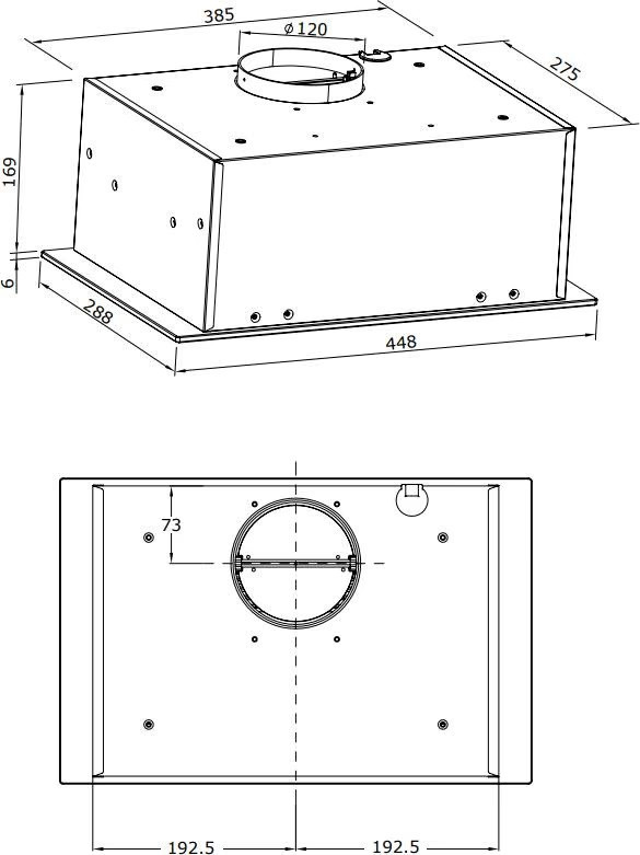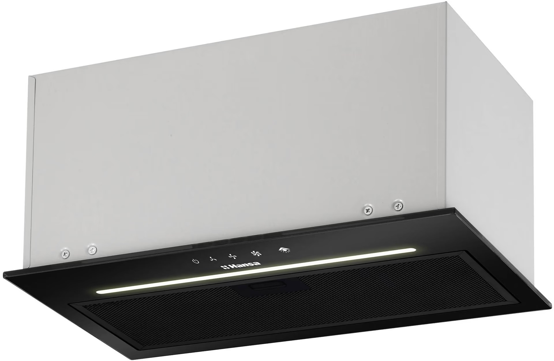 Повністю вбудована витяжка, відведення/рециркуляція, продуктивність — 250 м³/год, сенсорне керування, дисплей, таймер, індикатор заміни фільтра, 3 швидкості, освітлення — LED 1 × 4 Вт, ширина — 44,8 см, матеріал — метал, скло, колір — чорний.