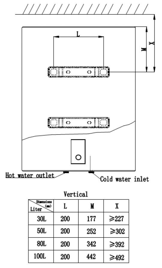 Внутрішнє покриття бака: титанокварцова емаль; час нагрівання води від 25 °С до 75 °С: 140 хвилин; 3 режими потужності: 0,8/1,2/2,0 кВт. Розмір з урахуванням монтажної планки (висота × ширина × глибина): 970 × 530 × 310 мм